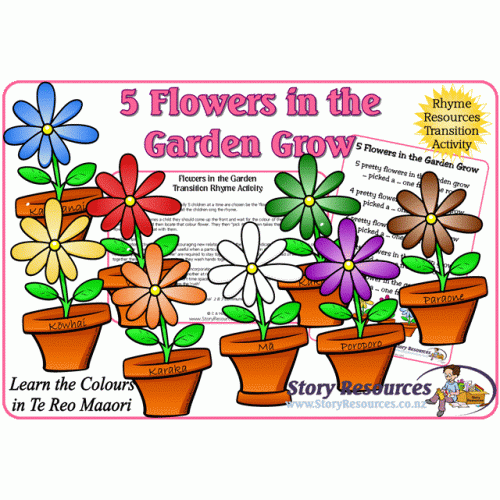 A great rhyming resource for supporting the development of peer relationship when used as a game. Learning about colours in English & Te Reo Maori or simply just singing it for fun at mat time. With 8 different flowers colours, you can choose which ones you use each time thus keeping the game dynamic - and the children guessing.