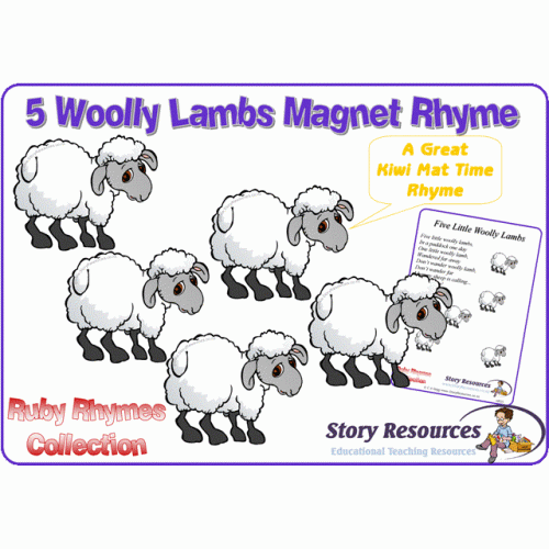 Five cute woolly little lambs in this great kiwi magnet rhyme. Just right for your early childhood centre.
