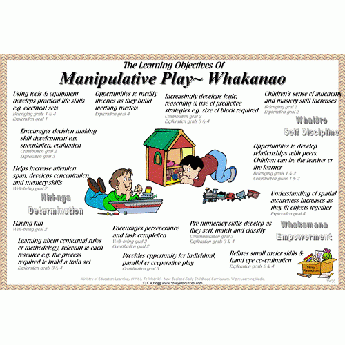 Te Whariki Set 11 to 20 Based on Te Whaariki (1996) these 10 laminated mini posters outline the learning objectives for 10 areas of play and includes the strands and goals. Great for parent education and teacher quick reference when setting learning objective during programme An absolute must have if to much of your time is spent writing up portfolios profiles, learning objectives, parent education etc.